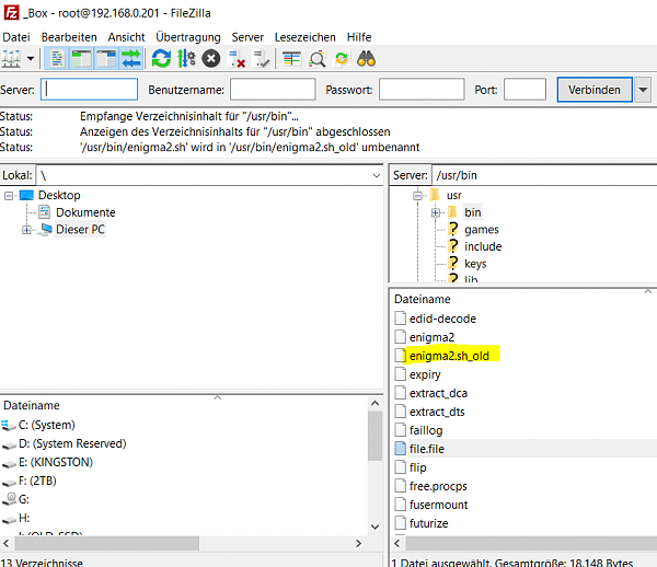 1. Enigma2-Box vorbereiten