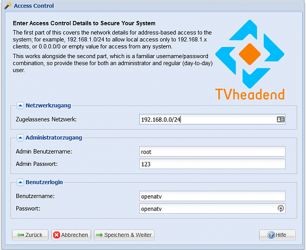 Erstellen Sie zunächst einen neuen Benutzer für den Zugriff auf Tvheadend. Gehen Sie zu „Zugriffskontrolle“ und fügen Sie einen neuen Benutzer hinzu. Geben Sie einen Benutzernamen und ein Passwort ein und legen Sie die Zugriffsrechte fest.